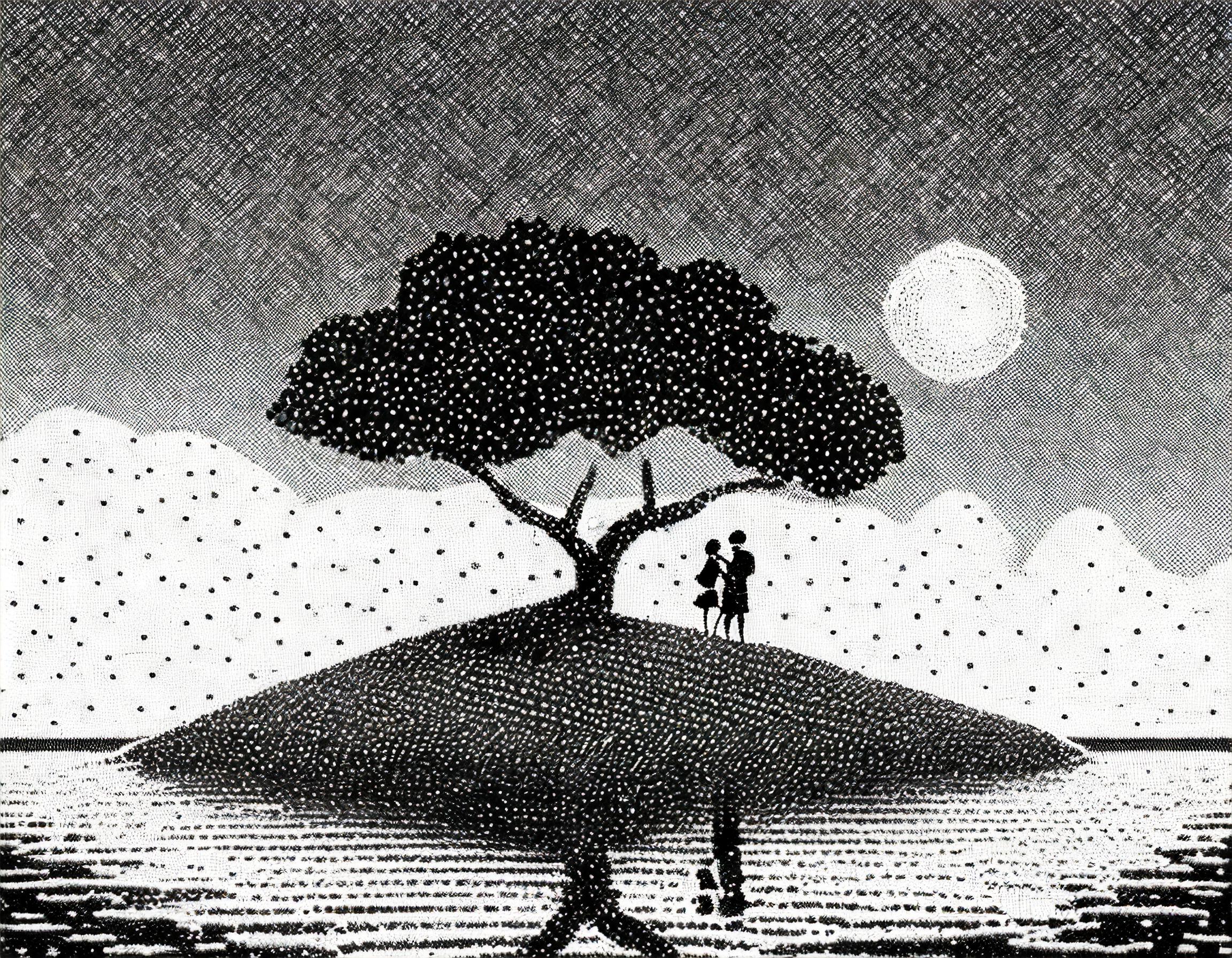 Their life together on this remote island became a peaceful yet tame one. Happiness and loneliness mingled, and the silence of the seashore occasionally roared in their hearts. On the island, surrounded by a mysterious atmosphere, A and B were bound by the threads of fate.